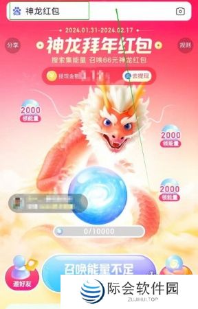 1、邀请好友参与活动即可领取奖励,奖励包括现金、神龙红包以及神龙能量。