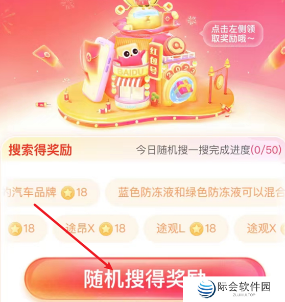 1、随机搜索:用户可以通过点击进入搜索得奖励页面,然后完成随机搜索即可获得奖励,每天限制50次。