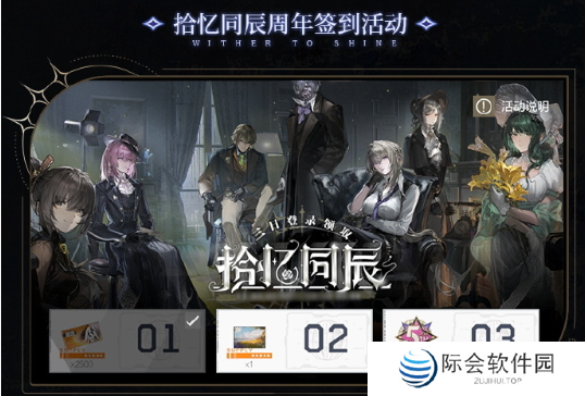 1、活动期间累计签到3天,即可领取包含主界面场景「花溪憩乡」、活动角色研发券*2500、收藏品「荣誉纪念章V」在内的全部奖励。