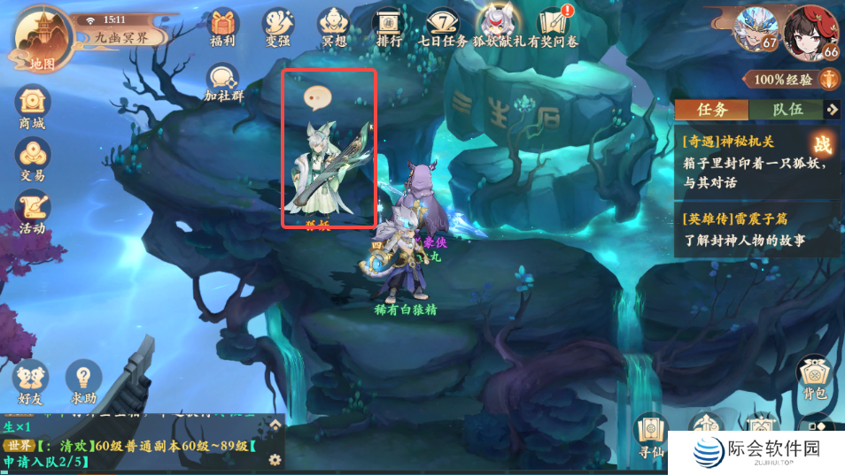2、前往九幽冥界如图所示处,与狐妖机关箱子对话