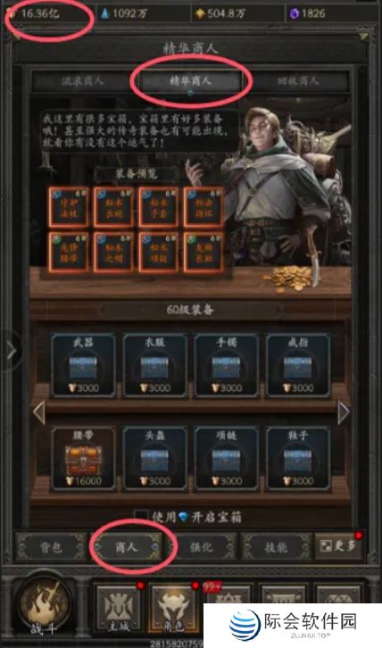 小技巧:前三天尽量节约使用左上角装备精华,精华可以在商人界面的精华商人处直接赌装备,前期黄色装备即可,不要强求橙色,这样没到一个整数等级时都可以快速更换最新装备
