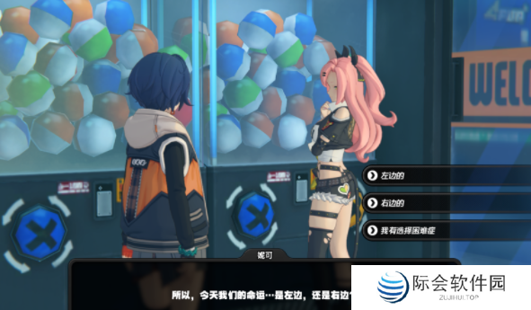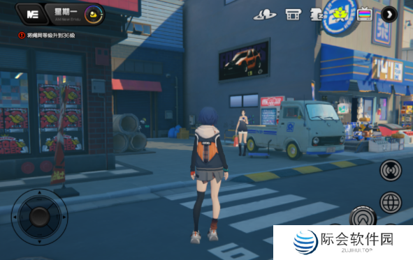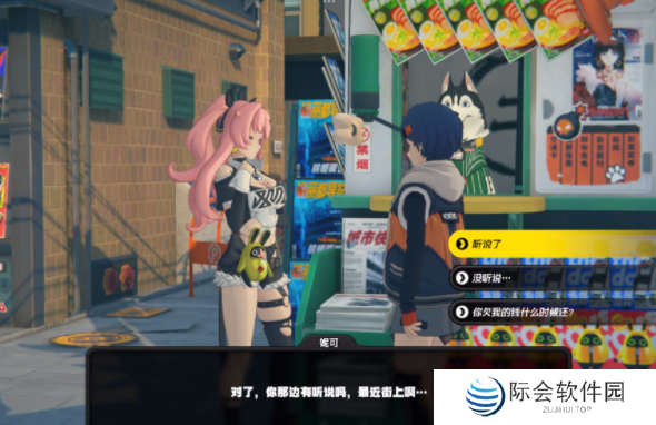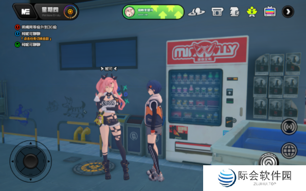 在六分街141杂货铺旁的自动贩卖机看到妮可,陪她探索自动贩卖机