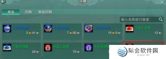 2、去再来镇药店找【冯德】买【上品止血散】回去对话【荀鸢】;