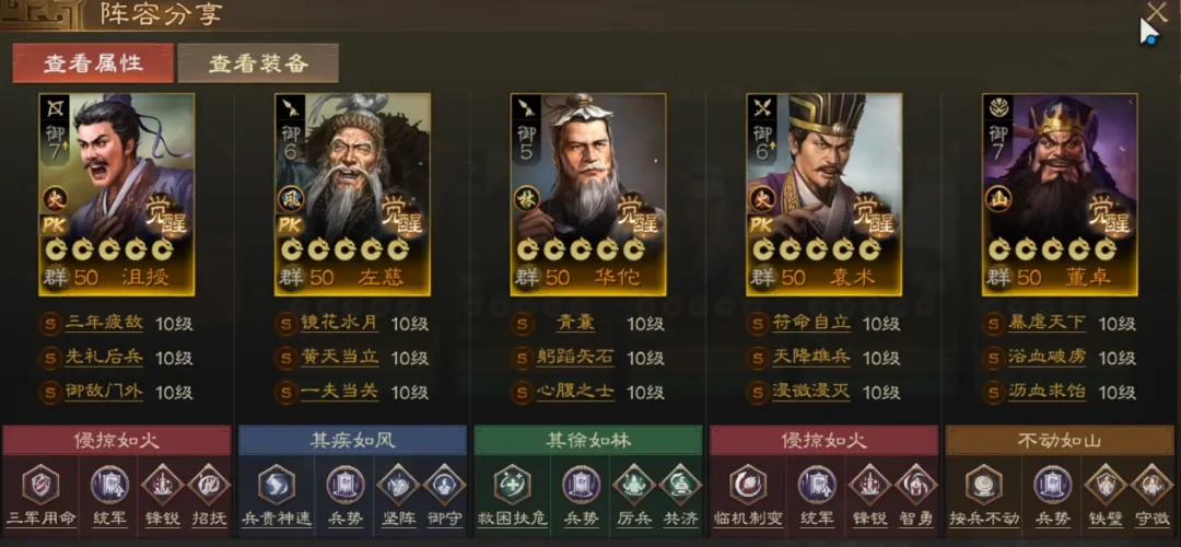 三国志战棋版共存阵容推荐-PK赛季方士之外三队共存阵容码