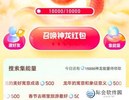 4、集齐10000神龙能量可以召唤神龙红包并兑换相应现金奖励。