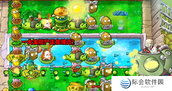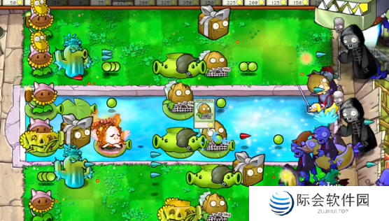 7、最后在中间补充多个机枪豌豆荚和燃烧玉米投手即可轻松过关。