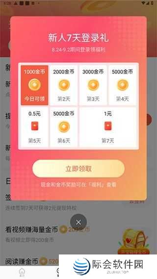 4、每天看剧达到一定时间可以获得金币,累积到一定数额就能体现,新人朋友还有七天签到福利
