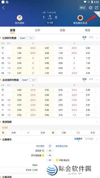 2、打开比赛后,右上角有一个五角星,点击收藏;