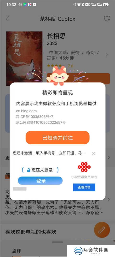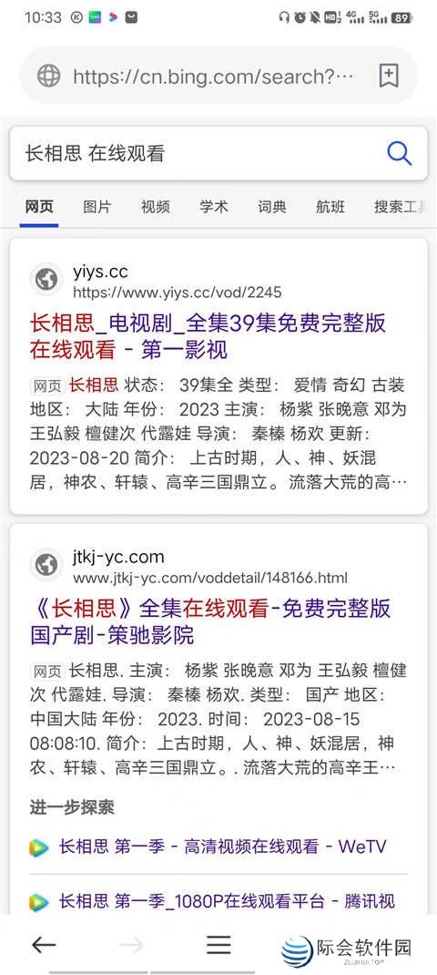4、软件本身不提供影视播放,只提供搜索功能,播放需要跳转到外部应用,所以内容展示均由微软必应和手机浏览器提供;