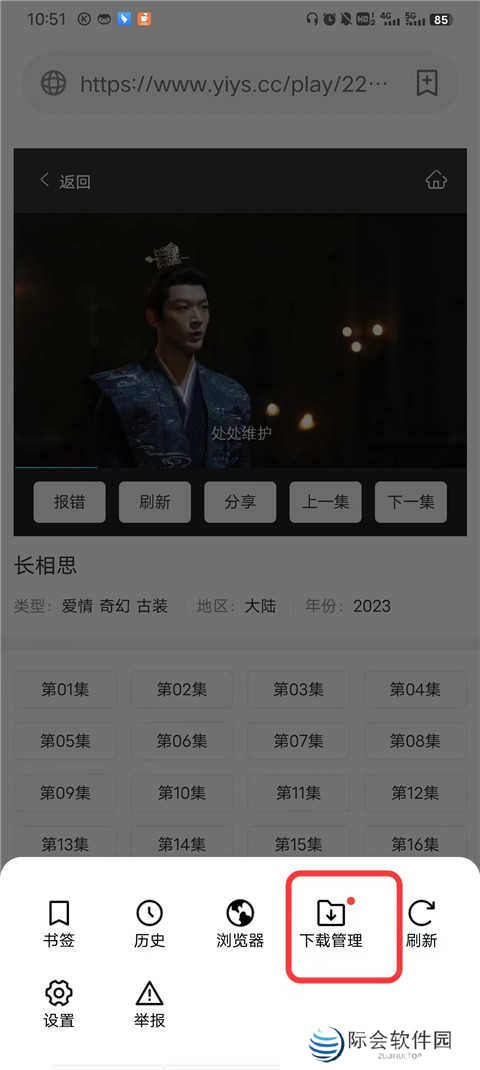 6、如果你想要更换保存位置的话,可以点击下载旁边的三条杠,点击下载管理;