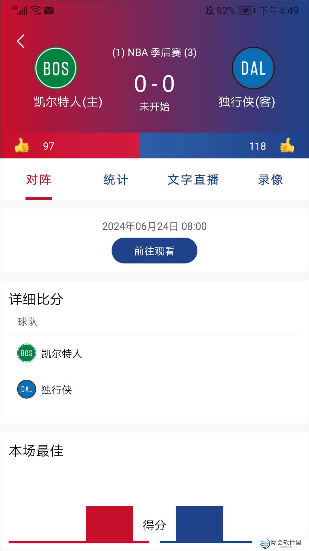 看个球app免费直播怎么看直播?1、打开软件后,进行赛事界面,包括NBA、CBA、英超、西甲、意甲等各种赛事,这里以NBA凯尔特人队为例,