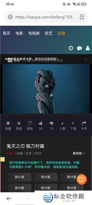 6、软件只提供搜索功能,并不提供播放功能,这里小编以鬼灭之刃最新章为例子;