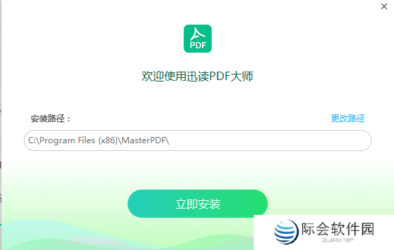 1、下载迅读PDF大师安装包,双击.exe应用程序,进入安装向导界面,我们需要点击更换路劲。