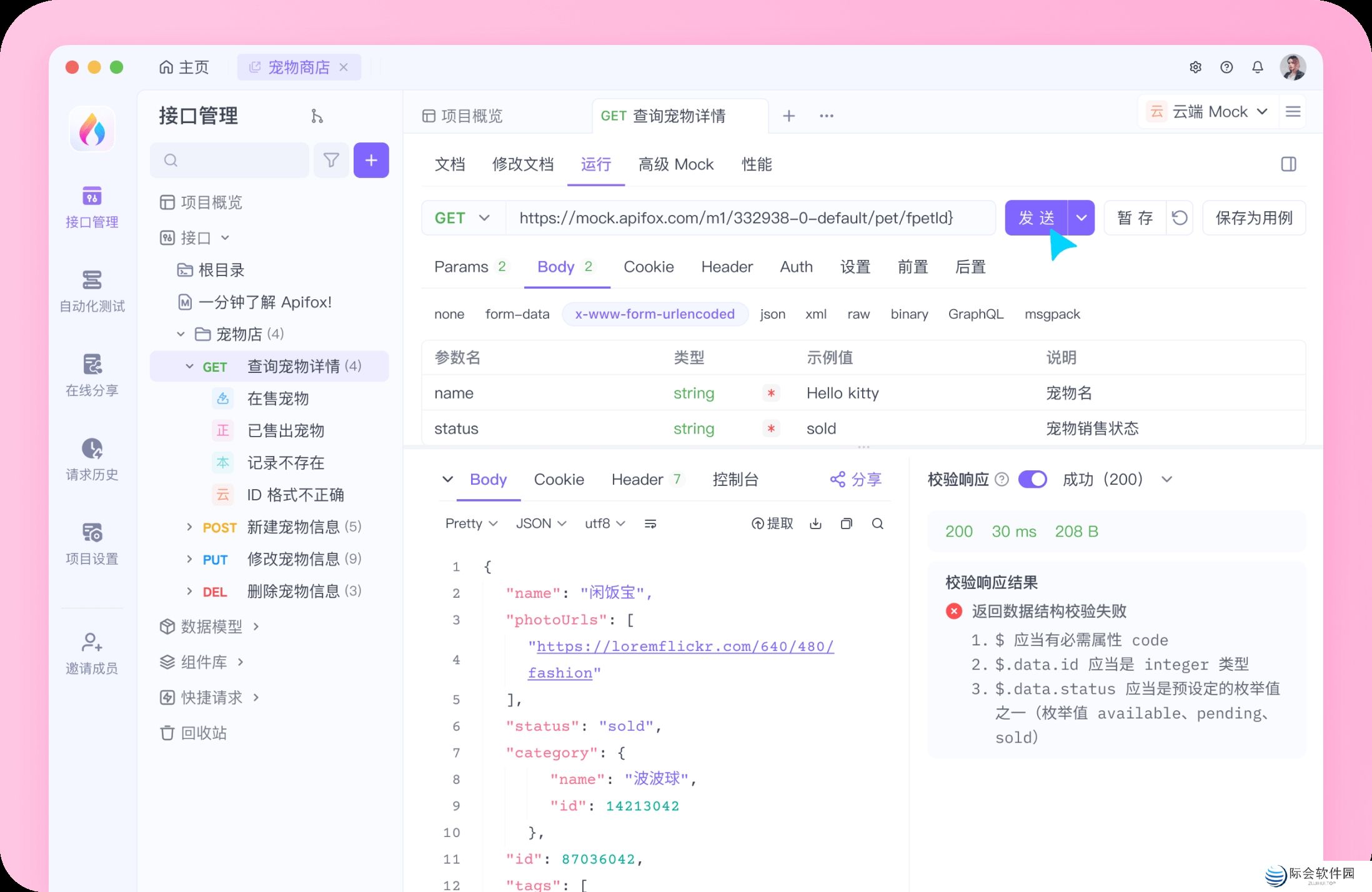 接口调试时,自动校验返回的数据结构是否符合接口文档定义,一键发现接口数据异常。