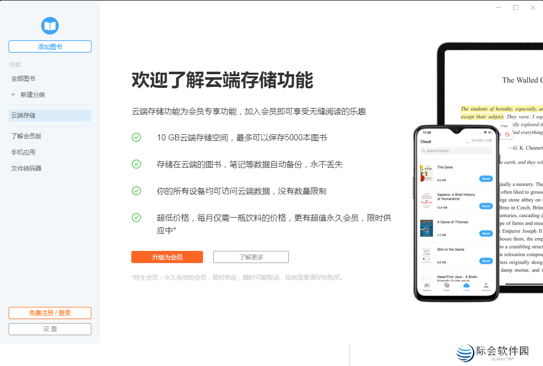 在云端存储文件、笔记、进度、设置,以及所有你能想到的一切!永远不用担心数据丢失,只需打开浏览器,轻轻一点,继续享受阅读