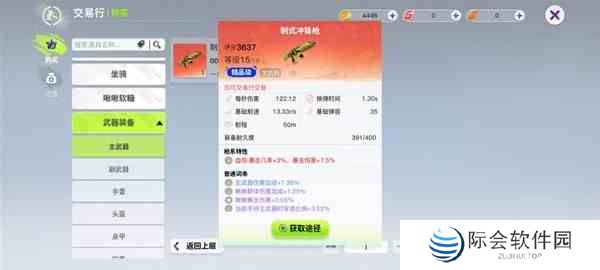 交易行所需的交易币既可以通过出售商品来获得,也可以通过点劵1:1兑换,获得的交易币既可以在交易行中继续消费,也可以在商城中购买道具。值得注意的是,很多强力装备只能在交易行交易,这一点会在商品属性中有所显示,如图中这把武器。
