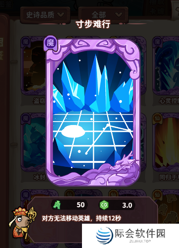 使用小技巧:在挑战妖王时会影响战局的一张牌,如果对方英雄不是很多,并且对方的神话英雄是近战的时候,会特别有用。当对方在不断移动英雄,想要消灭妖王的时候,我们释放寸步难行,对方只能“望妖兴叹”了~另外陷阱也有适当干扰对方移动的效果。