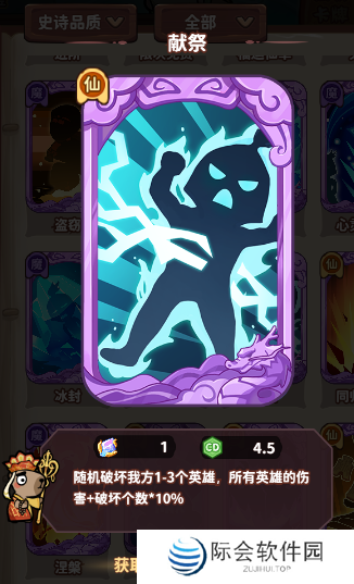使用小技巧:在前期使用,整体会收益很大的一张牌。你总不想破坏自己的神话英雄才获得增伤效果吧?前期使用献祭消灭自己的普通英雄,可以获10%~30%的整体增伤,后续召唤的英雄也享受此加成哦~