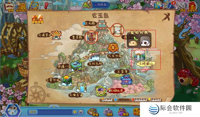 3、进入玄玉岛之后再打开小地图,进入云隐鹤山。