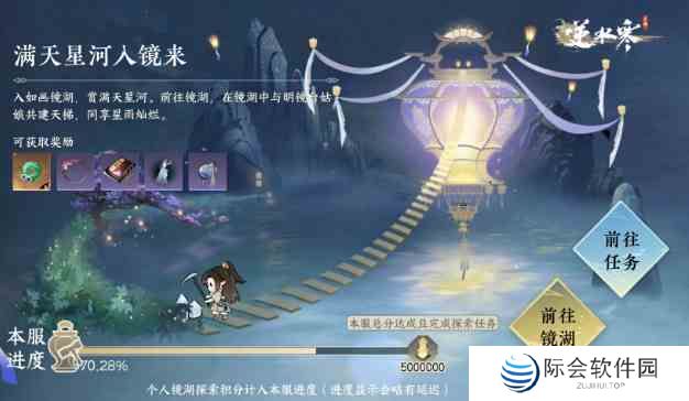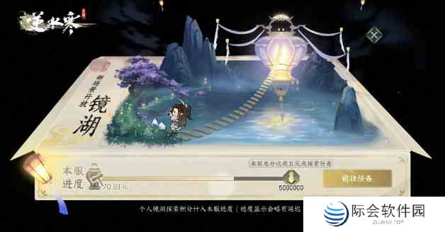 当玩家到达镜湖(通过世界地图或“呼吸”功能界面均可)后,就会收到【满天星河入镜来】任务,这是一个【全服协作任务】,本服所有玩家的贡献会汇总成一个大进度,直到任务进度被解锁。