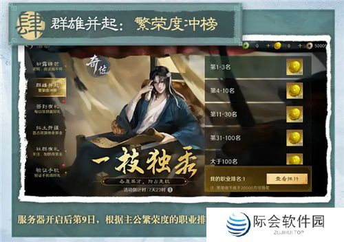 活动介绍:是一枝独秀还是泯然众人?在服务器开启后第九日,系统将根据主公繁荣度进行职业排名结算,届时可获得大量黄金奖励。