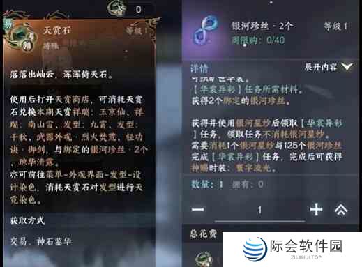 4、完成上图的那个需要150个银河星纱需要7w才能换取琼华白羽,还需要150个琼华清露,也是天赏石一个换一个27w。