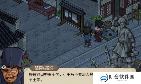 1、在楚襄城的雕像这里找到差役与其进行对话。