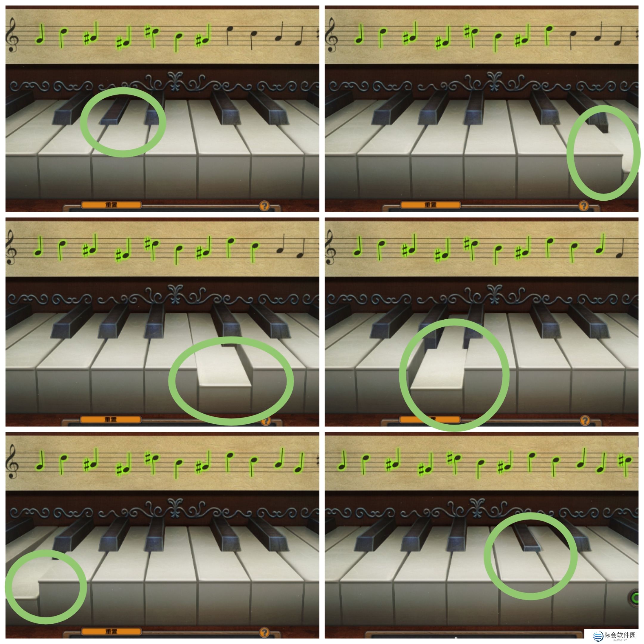 14、进入第三场景。打开钢琴,安装钥匙(钢琴键,估计是机翻),使用笔记,琴键顺序如下。获得弹夹。
