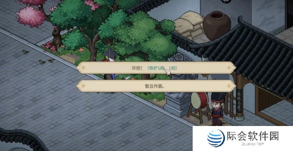 4、去【衙门】来到树下选择【开挖】获得碎羊皮完成任务。