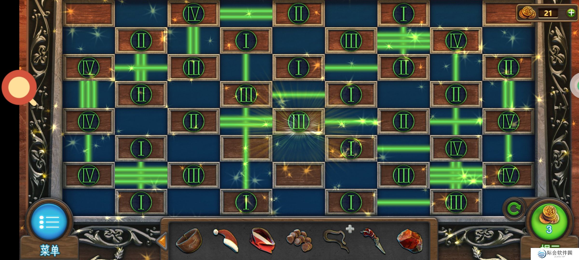 驯鹿房,白圈处使用金币,完成小游戏,得到:①浆果,②线。