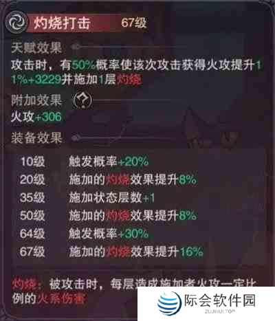 7.灼烧打击:普攻上灼烧并增加本次攻击伤害和增加灼烧效果(满级灼烧效果+32%)