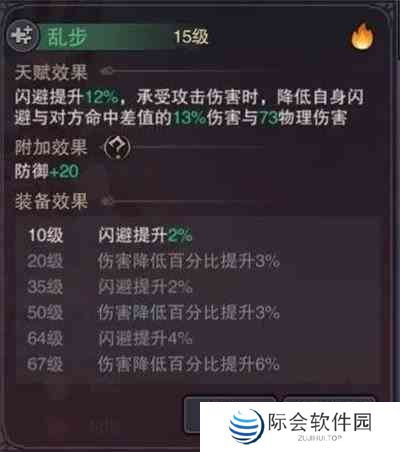 3.乱步:基础闪避+12%承受伤害时,减少自身闪避与目标命中差值13%的伤害(满级闪避+20%)