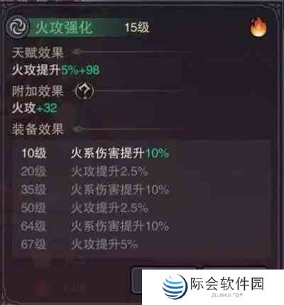 8.火攻强化:满级可提高自身火攻+15%和造成的火焰伤害+30%