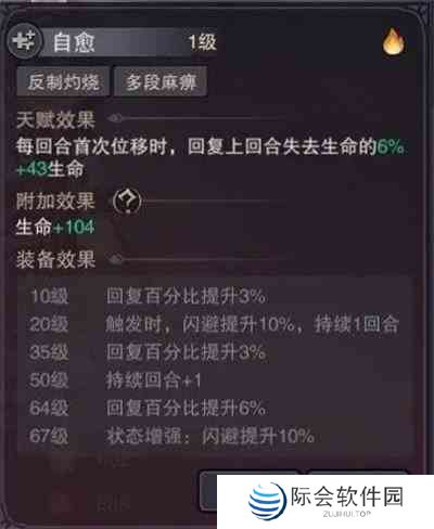 5.自愈:每回合首次位移时,回复上回合失去的一部分生命值(触发回血时最高可提高闪避+20%持续两回合)