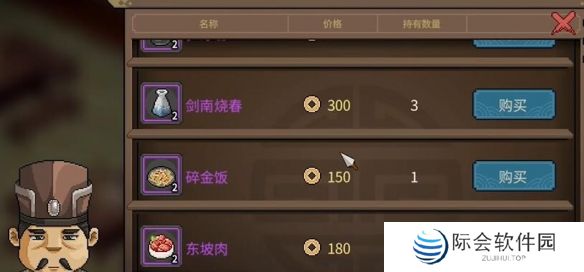 3、接着前往霖安城的太白楼在这里购买大量的材料,主要买乙级的酒和乙级主食就行。