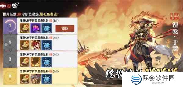 活动介绍:任意UR守护灵升星到达一定的星级就可以获得对应豪华奖励,海量十连抽,灵槐露,还赠送限定守护灵涅槃·于禁。