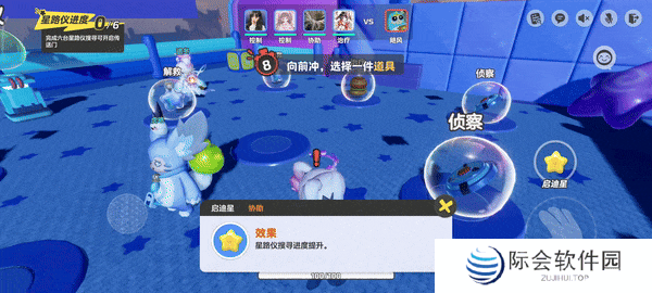每局游戏开始之前,星宝们可以选择本剧使用的技能,一共有6个技能,其中元气汉堡、冰冻手雷、铁甲药水和闪电跑鞋都能极大提高星宝的生存能力,启迪星和探测仪,可以让星宝更快搜寻星路仪