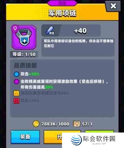 【军用项链】作为游戏中的一项强大装备,其不同品质所带来的增益效果各具特色。蓝色品质即可提升攻击力,而紫色及以上品质更是能显著增强击败精英怪或boss后的激励效果,最高可达攻击力提升百分之六十五。对于追求战斗实力的玩家来说,军用项链无疑是提升战斗力的不二之选。