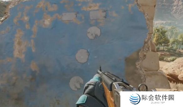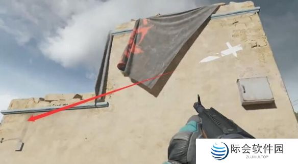 来到荒废村庄的矮墙上,根据刀的箭头可以看到数字7