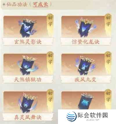 毕业功法即仙品功法,可成长,融合至六重将成长为神品。