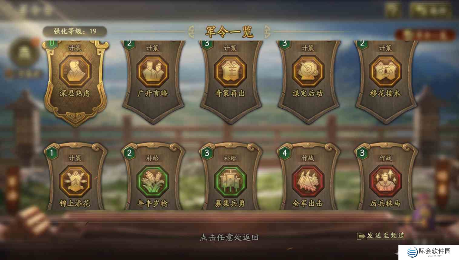 军令分为计策、补给、作战、兵略四类,能提供资源、战斗多方面的增益,还可升级军令等级提升增益效果,为各位主公在前期资源获取、队伍练级,后续的战场作战、队伍搭配上提供各方面加成。