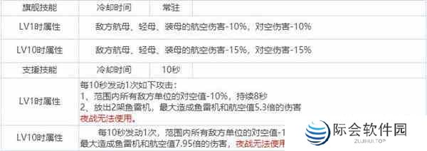 敌方航母、轻母、装母的航空伤害-10%,对空伤害- 10%