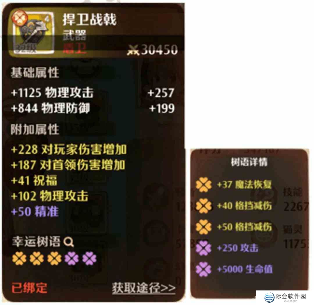 金装有一定几率开出树语,树语可随机增加不同的属性,提升战力评分,树语等级(2-5)树语越多属性增幅越大,但是能否出树语,出几树语出什么属性,是纯粹的概率问题,无需特别的强求。树语是可继承的。