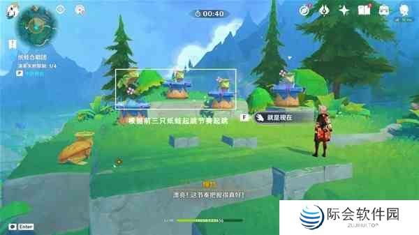 阶段1.根据前三只纸蛙起跳节奏,交互“就是现在”起跳;