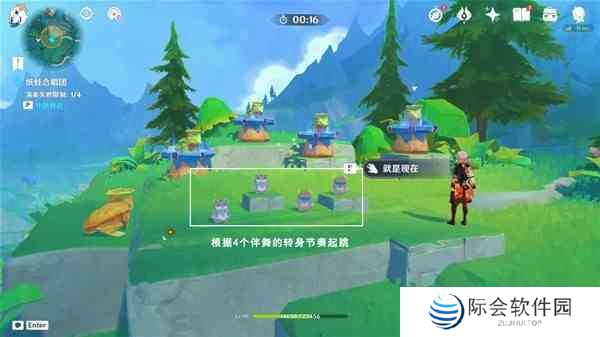 阶段2.根据4个伴舞的转身节奏,对应纸蛙的位置,交互“就是现在”起跳;