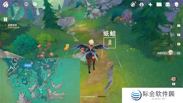 往地图的东北方向沿着道路走,与2只纸蛙对话