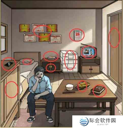 1、这一关我们要在房间找到丢了女儿的老爹的心酸难过的地方