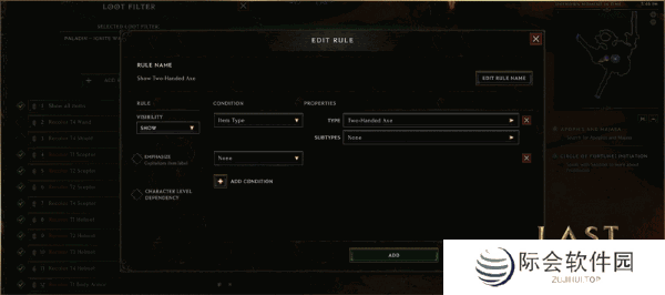 另外,你可以选择当过滤器界面打开时,地上的物品是否在标签尾端显示对应的过滤器规则号码。你也可以在创建规则时,选择是否隐藏与物品类型不兼容的词缀。