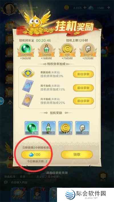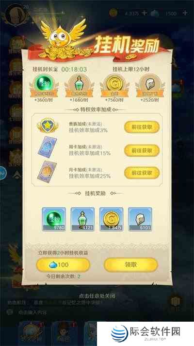 4、点击挂机宝箱后就可以直接领取升级经验和金币奖励了
