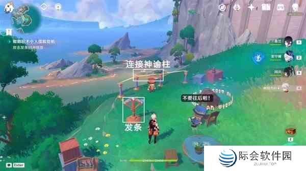 按图中路线走,前往山坡上触发对话